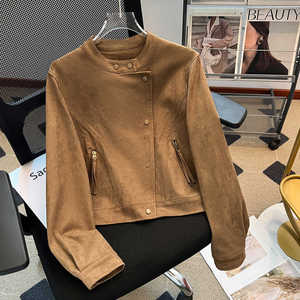 巨好看的黑色麂皮绒夹克女士短款2025早秋季新款小个子机车服外套