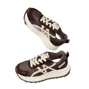 厚底德训鞋女2025秋季新款透气百搭小个子增高复古圆头休闲鞋女