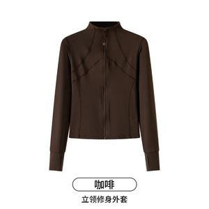 H536运动外套健身服女长袖上衣跑步服裸感瑜伽服立领瑜伽外套上衣