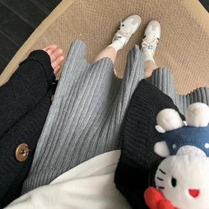 纯色松紧腰针织半身裙女秋季百搭休闲裙子显瘦小个子半裙a字短裙