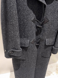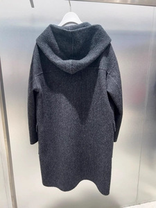 M**檬女装2025冬羊角扣连帽双面呢大衣深灰毛呢外套女4FA170371