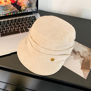 日系复古丝绒黑色贝雷帽女秋冬时尚百搭八角帽大头围显脸小画家帽