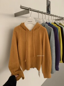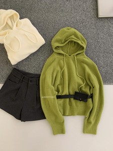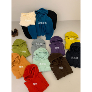 MZI STUDIO 2025秋冬韩系简约风宽松显瘦连帽抽绳套头毛衣女25768