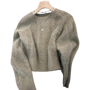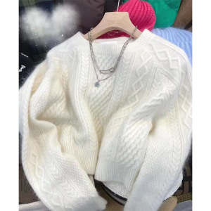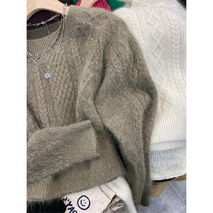 慵懒风温柔系高级感马海毛毛衣女秋冬加厚打底内搭麻花上衣针织衫
