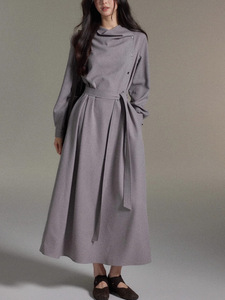 贰羊设计【暮云归】法式慵懒松弛紫色风衣式连衣裙女秋设计感长裙