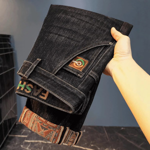 2025秋季爆品男士牛仔裤欧版小直筒百搭刺绣简约牛仔裤