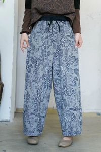 棉麻哈伦裤2025秋季百搭休闲裤松紧腰印花抽绳宽松哈伦裤女