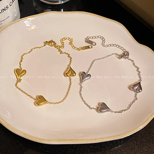 韩系甜美气质爱心钛钢手链女轻奢小众简约时尚百搭桃心手饰品批发