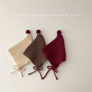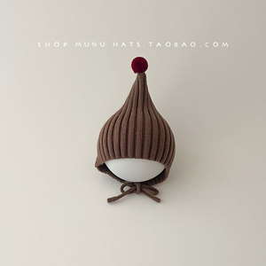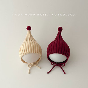 婴儿帽子秋冬天毛线帽韩版洋气尖顶针织护耳帽男女宝宝保暖防风帽
