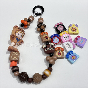 通孔亚克力烤漆电话机串珠笔配件手机钥匙链包挂diy手工饰品材料