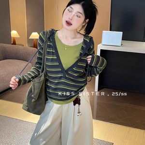 T8119撞色拼接条纹毛衣长57-仅供货经销商不退换