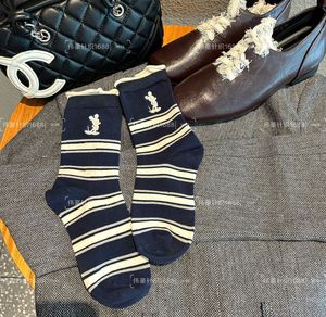 秋冬袜子女卡通刺绣卷边罗口中筒袜韩系ins学院风拼色条纹堆堆袜