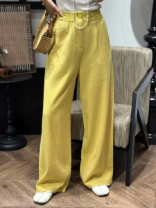 0914-167天丝亚麻蕾丝腰拼接阔腿裤女