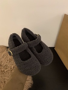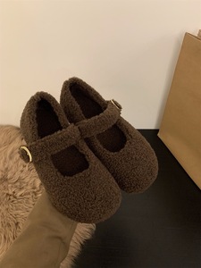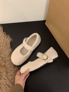 厚底白色加绒毛毛鞋女鞋子外穿2025新款秋冬季玛丽珍单鞋毛绒棉鞋