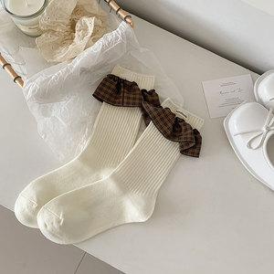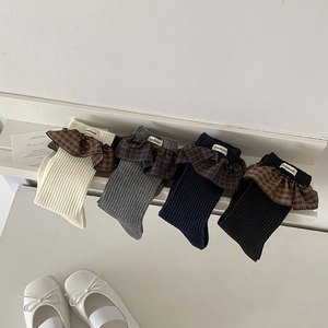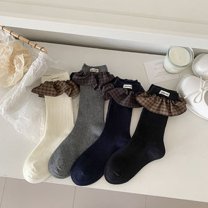 袜子女棉袜秋冬新款纯色格雷花边ins潮日系复古少女JK百搭堆堆袜
