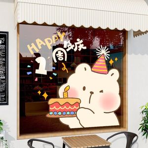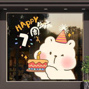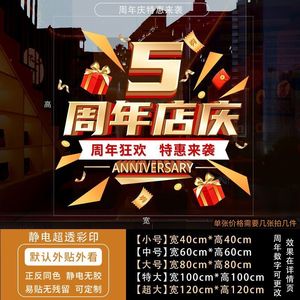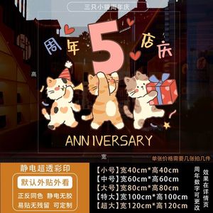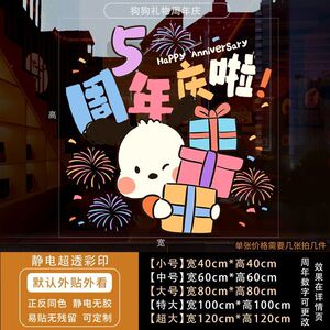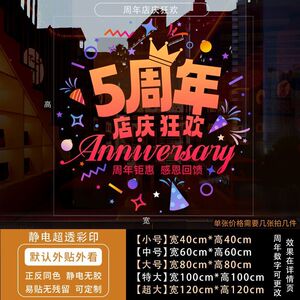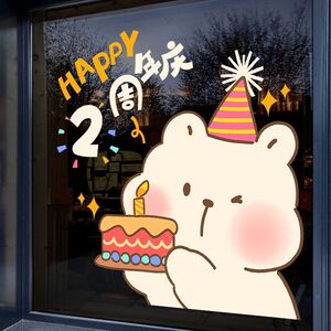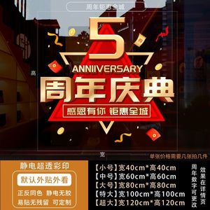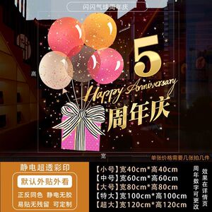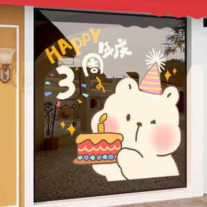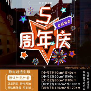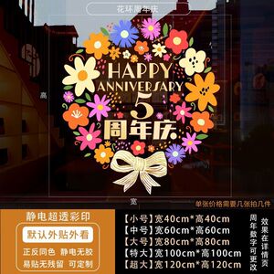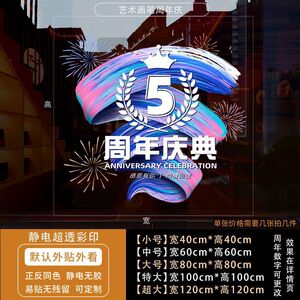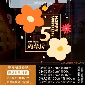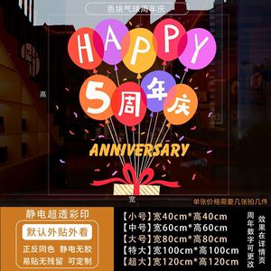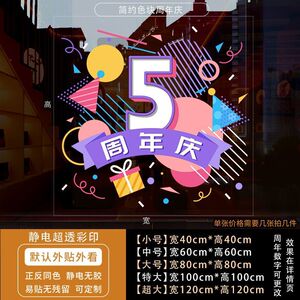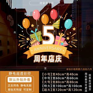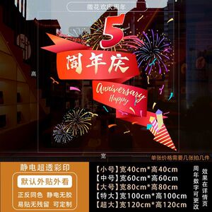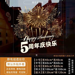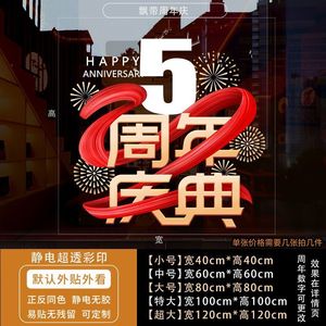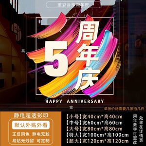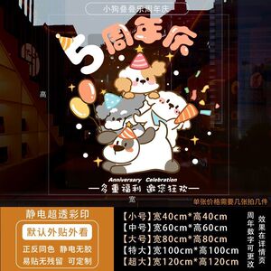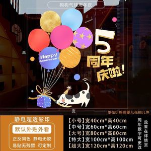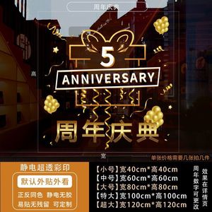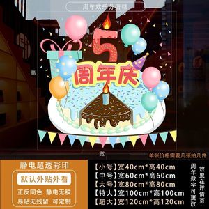周年庆活动装饰玻璃贴纸蛋糕店庆场景布置静电贴公司开业墙贴门贴