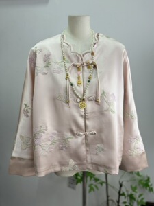 缎面国风外套重工刺绣新中式外搭开衫绝美女装盘扣唐装真丝上衣秋