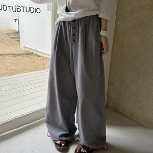 时尚抽绳松紧腰格子休闲长裤女2025早秋新款休闲宽松慵懒两穿裤子