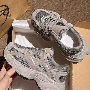高级感老爹鞋女鞋子2025新款复古显脚小运动鞋厚底灰色休闲鞋跨境