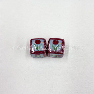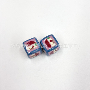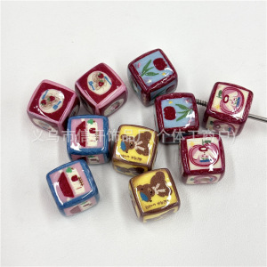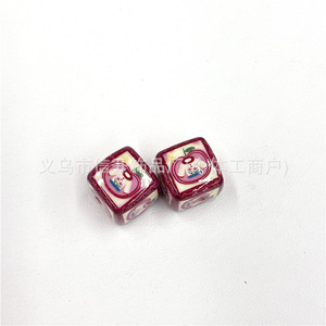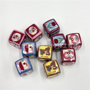 通孔亚克力花朵小熊印花方块串珠笔配件手机钥匙包链diy手工材料