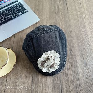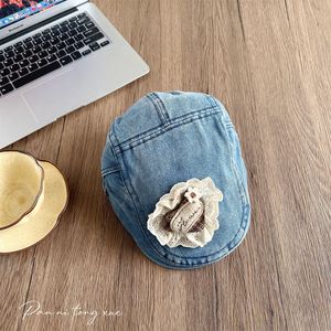 成人~新款日系爱心蕾丝牛仔前进帽女春秋季做旧复古贝雷帽帽子