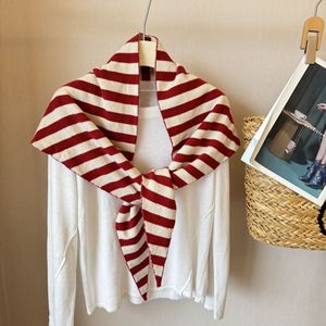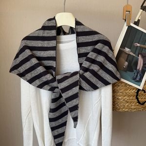 冬季围巾韩系氛围感新款百搭保暖护颈针织三角巾围巾条纹披肩外搭