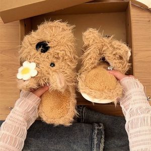 可爱懒人一脚蹬2025新款冬加绒保暖棉拖鞋女室内家居防滑毛毛拖鞋