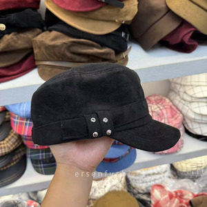 2025秋季新款麂皮绒平顶马术帽子女韩系ins气质氛围感文艺报童帽