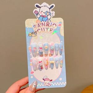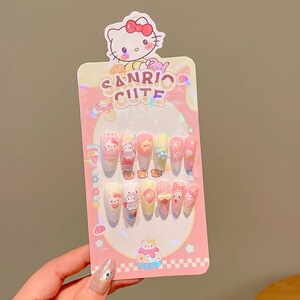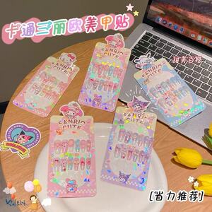 卡通三丽欧系列长款穿戴甲儿童3D立体浮雕指甲贴无毒可拆卸美甲贴