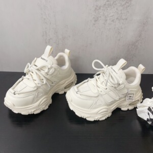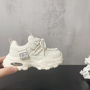前系带装饰学生韩版潮流百搭纯色款小白鞋2025年秋款男女童老爹鞋