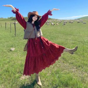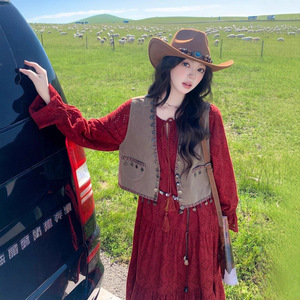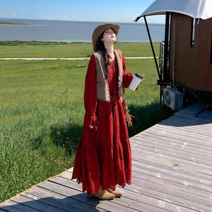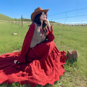 胖MM红色甜酷长袖套装女秋季新款加大码300斤旅游穿搭马甲连衣裙2