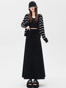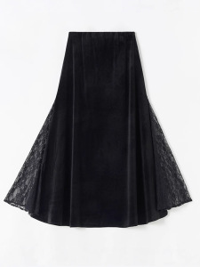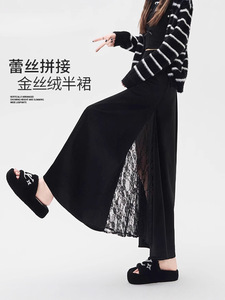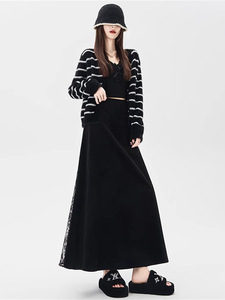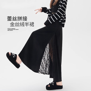 蕾丝拼接半身裙女2025秋季新款女装韩系显瘦中长款A字裙伞裙A7403