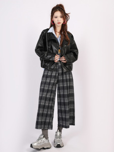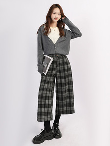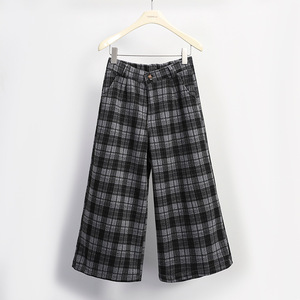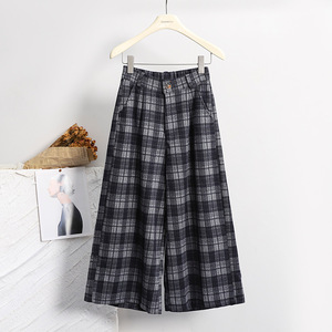 菲媛英伦风格纹八分裤女 秋冬新款休闲显瘦宽松舒适小个子阔腿裤