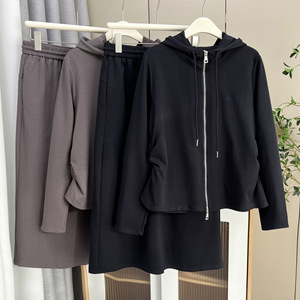 200斤套装秋装新款大码女装胖妹妹休闲连帽外套半身裙两件套8298