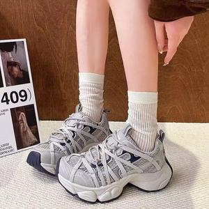 老爹鞋女百搭绑带厚底增高运动鞋休闲2025透气网面巴黎新款秋秋款