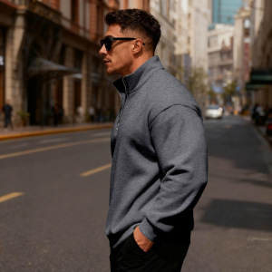 亚马逊秋冬新款男装加绒卫衣跨境欧美潮流半拉链长袖立领男士上衣