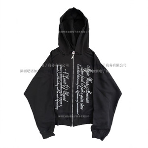 欧美跨境外贸字母印花拉链卫衣长袖套头连帽衫复古外套街头穿搭