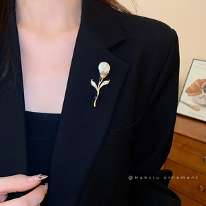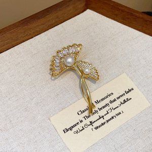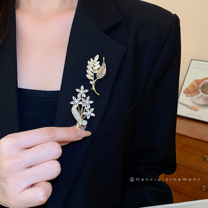真金电镀锆石花朵胸针轻奢高级感别针时尚精致气质优雅百搭配饰女