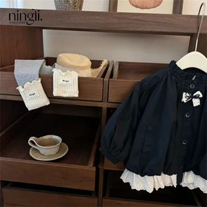 【柠里】甜味千金!韩系复古女宝花边宽松花苞设计感风衣外套跨境