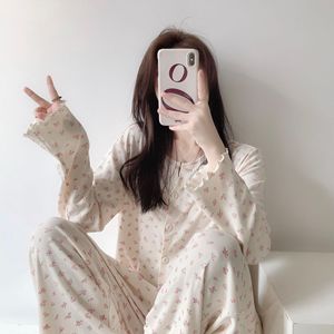 韩系睡衣女甜美风碎花2025新款春秋宿舍简约风长袖长裤家居服套装