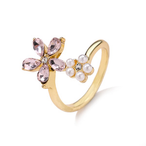 跨境多多热销4件套合金叠戴戒指套装时尚优雅粉系感花朵戒指女