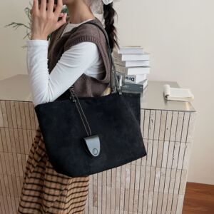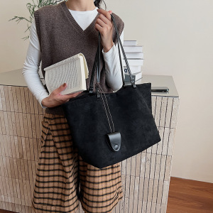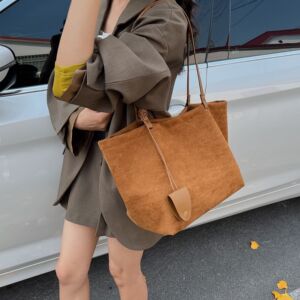 秋冬复古磨砂麂皮绒托特包包女2025新款松弛感大容量单肩通勤大包