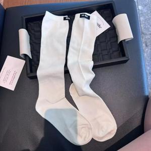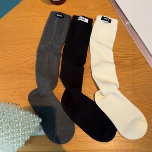 韩系简约布标小腿袜早秋新款洋气外穿显瘦长筒纯色女袜极简字母袜