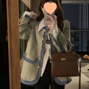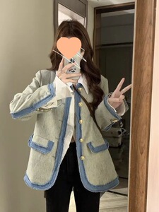 尊嘟好韩!!【撞色牛仔】新款拼接风外套秋冬新款气质上衣开衫