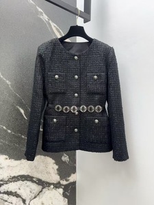 南油直供25秋冬洋气名媛风粗花呢皮扣系带外套经典四口袋修身上衣