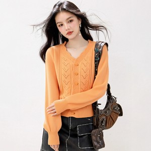 R9364爱心纽扣V领长袖针织开衫女秋冬韩系软糯修身外搭上衣跨境潮