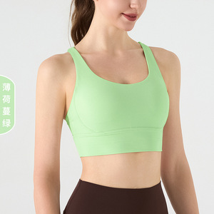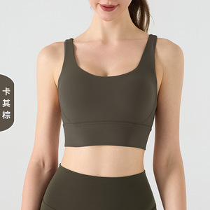 lulu运动背心内衣女固定杯一体式高强度防震美背健身上衣瑜伽文胸