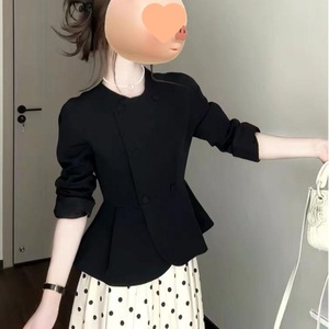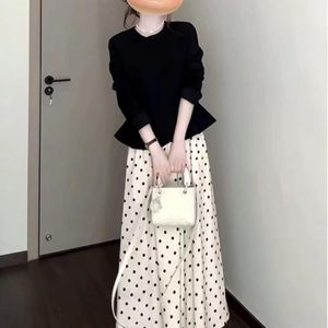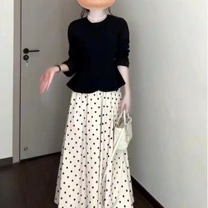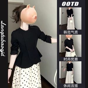法式复古风赫本黑色外套上衣波点长裙早春穿搭两件套时尚减龄