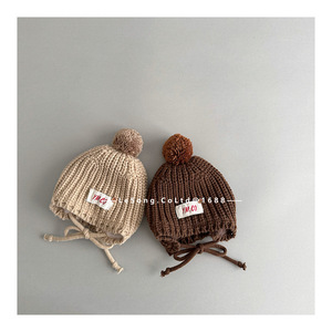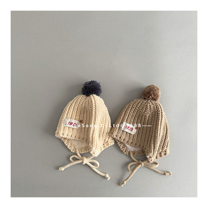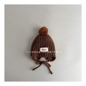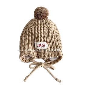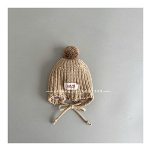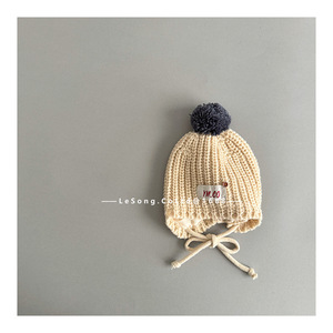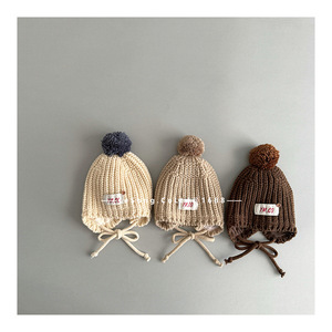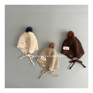 宝宝护耳针织帽系带毛球洋气秋冬儿童加厚加里布宝宝针织毛线帽子