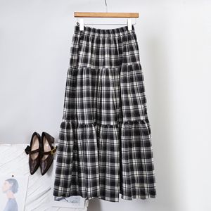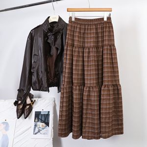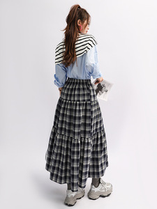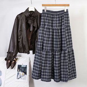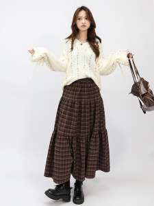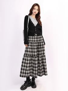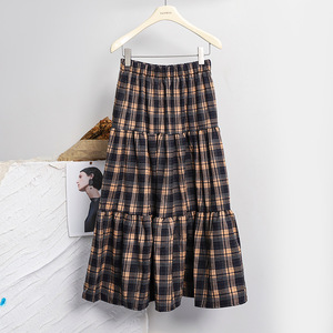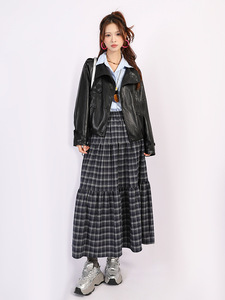菲媛复古拼接格纹半身裙女 秋冬新款学院风高腰显瘦百搭垂感A字裙